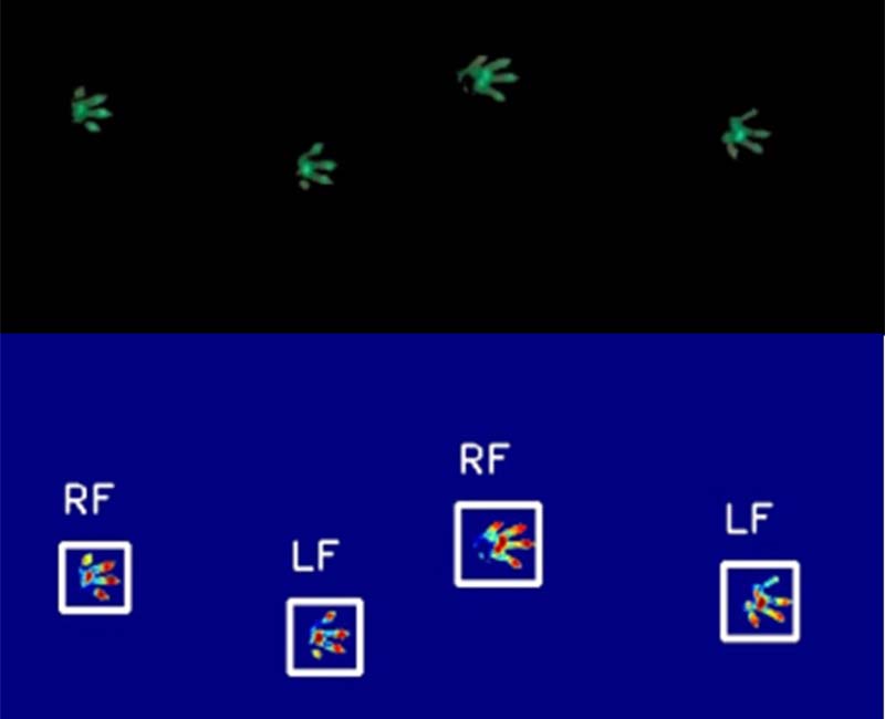 GAT-Gait高分辨率单(多)通道步态分析系统可通过将实验动物置于步行台,使其从步行台的一端行走到另一端,在此过程中,实验动物行走时所表现的步态,系统采用脚印光亮折射技术,检测分析出步行周期、在何种姿态下所对应的病症,进而评估其受关节炎、神经受损等病症影响的程度。可用于研究脑疾病、神经系统损伤、肌肉相关损伤、骨关节疾病与外伤等模型动物的运动机能。