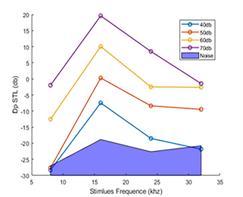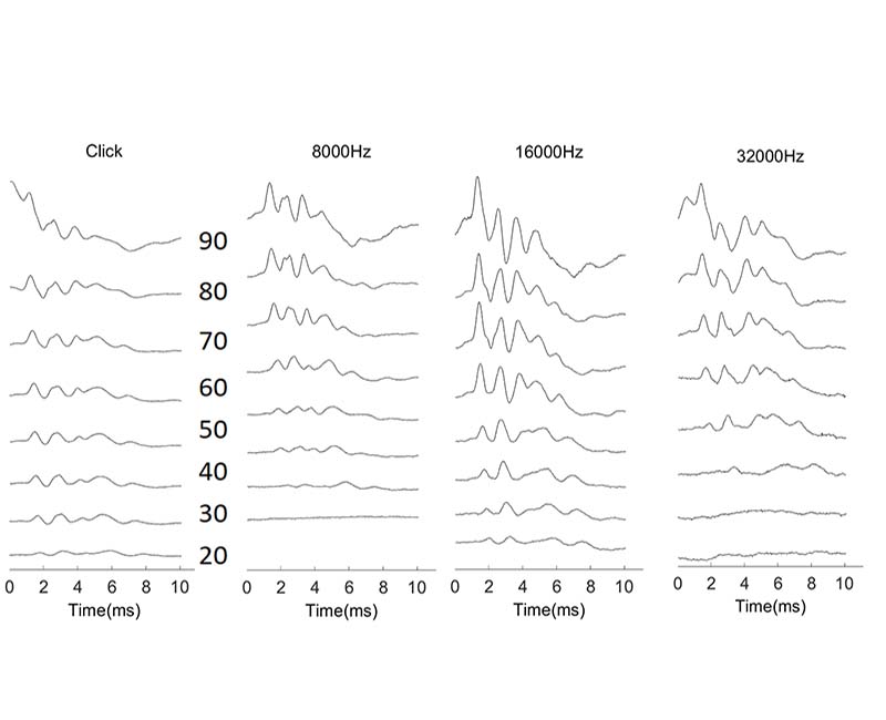 小鼠听觉脑干反应(ABR)测试系统通过提供不同强度的声音刺激来诱导和记录大脑皮层中的潜在反应。测试结果用于确定听力损失的情况,通常用于听力筛查和阈值评估。畸变产物耳声发射(DPOAE)记录了耳蜗发出的耳道声音,并反映了毛细胞的外部功能。